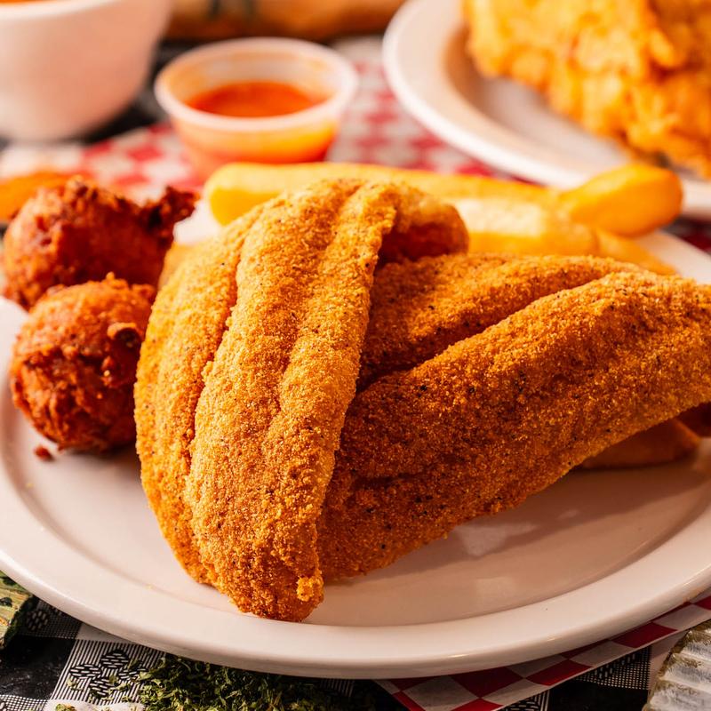 Our catfish is hand-breaded. Our fried chicken is marinated and seasoned to perfection. Our sauces are made from scratch, as well as, our mouth-watering hushpuppies.