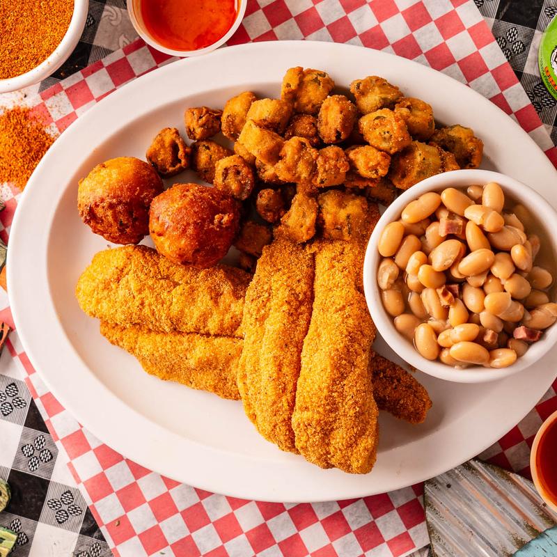 Our catfish is hand-breaded. Our fried chicken is marinated and seasoned to perfection. Our sauces are made from scratch, as well as, our mouth-watering hushpuppies.